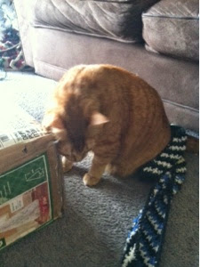 Checking out the box. Mom took down the tree and all the fun toys that was on it.